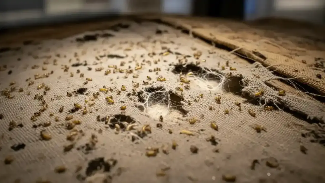 Fabric pest larvae feed undetected for weeks or months before damage becomes visible. A single clothes moth can lay up to 300 eggs, and larvae will feed on wool, silk, and cashmere continuously for up to 18 months. Early treatment prevents irreplaceable damage to garments, carpets, and heritage textiles.